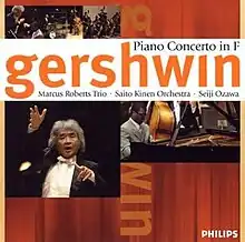 Gershwin: Piano Concerto in F is an album by Marcus Roberts, his trio and the Saito Kinen Orchestra under the direction of Seiji Ozawa, recorded live at the Saito Kinen Festival in 2005. It features Roberts' arrangement of Gershwin's concerto. This was Roberts' second time working with Ozawa on a live recording, A Gershwin Night being the first. The album saw a limited release in Japan.