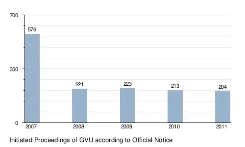 The number of cases opened in the years 2007 to 2011 fell from 576 to 204. The decrease is mainly due to the fact that since 2008 many prosecutors have focused on those investigations in which more than 200 copies of a work were produced. The GVU in its own words has adopted this trend and focuses its investigative activities increasingly on major cases.