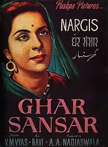 Ghar Sansar is a 1958 Hindi film starring Balraj Sahni, Nargis, Rajendra Kumar and Kumkum in lead roles.