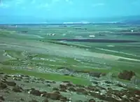 A paved road, delimited by vertical slab stones, runs parallel to the latter mortuary area. The construction of the road is supposed to be contemporary to the monumentalization of the necropolis.[35] The Bedini excavations have unearthed an area containing thirty two slab-cist tombs, made of a stone different from the one used in the serpentine-shaped area.[35] The cist tombs were mostly without their cover slabs, as these were wrecked during centuries of agricultural activities in the area. This so-called "Bedini's area" appears to have undergone three phases of development: