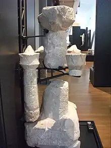Some scholars have cast doubts about the original pertinence of the latter to the necropolis, in that the only evidence in favour of this fact would be the spatial contiguity between the statues and the mortuary complex itself.[56] This led others to hypothesize that the statues had been conceived as telamons to adorn a temple, close to the necropolis, but dedicated to the Sardus Pater. According to this theory, the temple with statues would have been erected to commemorate nuragic victories against the Carthaginian invaders, during the sardo-punic wars.[63][64] In this case, the statues would have portrayed the retinue or the bodyguards of the deity.[63]