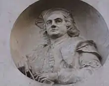 Marble relief of Giovan Battista Caniana, outside the Basilica of San Martino, Alzano Lombardo