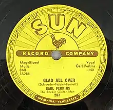 "Glad All Over" is a 1957 song recorded by rock and roll and rockabilly artist Carl Perkins, "The Rockin' Guitar Man", at Sun Records in 1957.[1] It was released as a 45 and 78 single, Sun 287, on January 6, 1958 (b/w "Lend Me Your Comb").[2] It was written by Aaron Schroeder, Sid Tepper, and Roy Bennett. It is not the same song as the single "Glad All Over" released in 1963 by The Dave Clark Five.