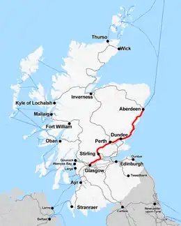 Dundee Aberdeen via the Dundee–Aberdeen line