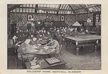 The building is category 'C' listed.[2] It occupies 1236 Maryhill Road, on the corner of Ruchill Street. Construction started in 1892,[3] triggering other similar facilities to be built at Redford Barracks in Edinburgh and Barry Buddon outside Dundee. For a fee soldiers could rent a room. The newlywed soldiers could spend their honeymoon night there. It offered a tearoom and a quiet room.[4][5] It was described as "a neat edifice open to visitors".[6]