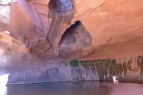 The geology of the area is dominated by the Glen Canyon Group, consisting of the Navajo Sandstone, Kayenta Formation, and Wingate Sandstone.[3] The entire stratigraphic section includes rocks dating from the Cretaceous to Pennsylvanian periods.[4]