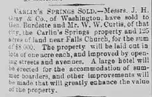 Carlin Springs Sold, article from Alexandria Gazette, April 21, 1887