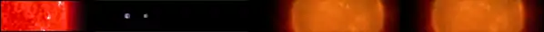Gliese 667 Cc is the second confirmed planet out from Gliese 667 C, orbiting towards the inner edge of the habitable zone.[6] From its surface, the star would have an angular diameter of 1.24 degrees and would appear to be 2.3 times[note 1] the visual diameter of the Sun as it appears from the surface of the Earth. Gliese 667 C would have a visual area 5.4 times greater than that of the Sun but would still only occupy 0.003 percent of Gliese 667 Cc's sky sphere or 0.006 percent of the visible sky when directly overhead.
