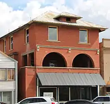 1912 | Neoclassical Revival | Houses Masonic Lodge #3, established in 1881. Stores and shops in street level and meeting rooms on upper floors[2] |
