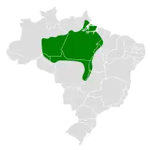 The glossy antshrike (Sakesphorus luctuosus) is a species of bird in the family Thamnophilidae, the antbirds. The glossy antshrike is endemic to Brazil, and can only be found near the Amazon River's outlet at the western Atlantic Ocean, and mostly the southern side of the river-(except southern regions of Amapá state); its range extent west to east is about 3,000 km (1,900 mi) in a contiguous region. The range includes the island at the river's mouth, Marajó Island.