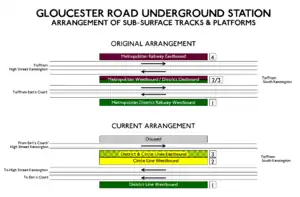 - ↑ "Gloucester Road". Art on the Underground. Retrieved 27 May 2020.