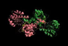 ![]() The crystal structure of glyoxylate reductase complexed with NADPH. Each color represents a monomer of the enzyme. This enzyme was isolated from a hyperthermophilic archaeon, Pyrococcus horikoshii OT3.[1]