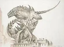 Emmerich decided to completely reinvent Godzilla's design because he thought the original Toho design "didn't make sense".[35] Emmerich also discarded the previous design approved by Jan de Bont, stating, "I saw the creature that they designed for [TriStar's first attempt]. Jan De Bont created a Godzilla that was very close to the original, but it was not right because today we wouldn't do it like that."[36]
