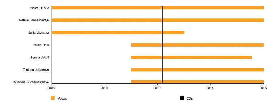 Goryń was formed in 2008 by members of the Students' Ethnographic Association. The group has a diverse knowledge of music and had performed more than 20 times as of late 2014.[1] While touring rural parts of Belarus, Goryń chose to perform without arrangements and incorporated specific features of regional dialect and singing styles in their performances. Their repertoire consists of songs from the Paleśsie region as well as from Central and Northern Belarus. The group attempts to preserve traditional culture in various urban environments, through the revival of regional festivals.[2]