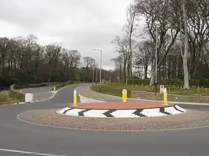 This included the creation of a new link road at Governor's Bridge on the primary A2 Ramsey to Douglas Road between the road junction of the newly created A18 Bemahague road (from Governor's Bridge to Signpost Corner), the A2 Governor's Road/Glencrutchery Road and Victoria Road in Douglas.[3] The new A2 link road effectively redirected the main road traffic and created the Governor's Dip bends off the primary A2 road which was used as part of the Snaefell Mountain Course for motor-cycle racing. The new link road also created a small wooded glen on the site which is known for its distinctive horse-chestnut trees.