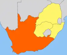 Map of the Cape Colony (orange) within South Africa (yellow).