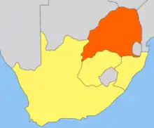 Map of the Transvaal Colony (orange) within South Africa (yellow).