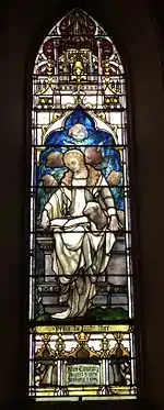 Liturgical music has been key to the worship and fellowship at Grace since the 1850s when the Rev. Rankin organized six African American girls to sing for the congregation. Grace grew so quickly in its foundational years in a town with long-established Presbyterians, Catholics, and Methodists, partly because of the hymns and chants offered in the Episcopal services. The first choirmaster was Johannes Oertel, nationally renowned painter and Episcopal priest, who was also the first to be married in the parish in 1851. In 1906, the chancel was enlarged and an organ was installed to accommodate a new men and boys choir.[3] It was at this point that the choir ranks and system of promotion and honors (choir crosses and ribbons) was introduced –and which remains. In 1936, Harry Rowe Shelley, an organist and composer at several well-known New York City congregations, retired to Grace Madison and took over the choir until the 1950s. The choirs became well known in the area and were annually asked to sing at the local Scribner and Vanderbilt-Twombly estates, where they were also treated to lavish dinners. In 1959, the Tellers Organ Company built the current organ under the supervision of Helen Thomas, the founder, and director of the Grace Church School Choir. A professional soprano soloist, Thomas also founded the Grace Church Sunday School and later became the full music director of the parish in 1969. In her service of over 50 years, Thomas shaped Grace's life into much as how it continues today. She played the organ for the parish until she died in 2006.[4]