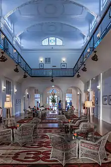 It was not long before the hotel became the centre of the colonial society in Suva, attracting not only tourists but all manner of official visits and grand balls to celebrate important visitors and events. In February 1915, former Australian Prime Minister Alfred Deakin stayed in the hotel on his way to San Francisco to serve as Australian Commissioner to the Panama–Pacific International Exposition.[5] In 1916 writer Somerset Maugham was a guest at the hotel and provided a characteristically acerbic description of his stay there, noting: "It is cool and empty ... The servants are Hindus, silent and vaguely hostile ... the food is very bad but the rooms are pleasant, fresh and cool."[6]