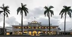 ![]() The main entrance of the Grand Pacific Hotel on Victoria Parade, Suva. | |