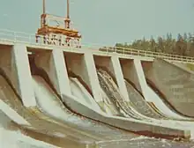 Barrage Jules-Allard at the large lake Saint-François in the 1980s. It is located in the municipality of Saint-Joseph-de-Coleraine. This dam has since been replaced. The St-François River begins here.