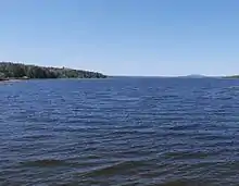 This large lake in the Eastern Townships extends into the Les Appalaches Regional County Municipality and Le Granit Regional County Municipality. This body of water stretches in part in the Parc national de Frontenac.