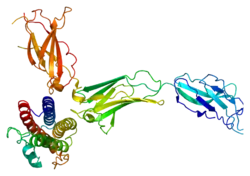 The granulocyte colony-stimulating factor receptor (G-CSF-R) also known as CD114 (Cluster of Differentiation 114) is a protein that in humans is encoded by the CSF3R gene.[5] G-CSF-R is a cell-surface receptor for the granulocyte colony-stimulating factor (G-CSF).[6] The G-CSF receptors belong to a family of cytokine receptors known as the hematopoietin receptor family. The granulocyte colony-stimulating factor receptor is present on precursor cells in the bone marrow, and, in response to stimulation by G-CSF, initiates cell proliferation and differentiation into mature neutrophilic granulocytes and macrophages.