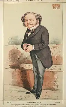 During the American Civil War, Granville was non-interventionist along with the majority of Palmerston's cabinet. His memorandum against intervention in September 1862 drew Prime Minister Palmerston's attention. The document proved to be a strong reason for Palmerston's refusal to intervene and for Britain's relations with the North to remain basically stable for the rest of the conflict despite tensions.[10] From 1866 to 1868, he was in opposition, but in December 1868 he became Colonial Secretary in Gladstone's first ministry. His tact was invaluable to the government in carrying the Irish Church and Land Bills through the House of Lords. On 27 June 1870, on Lord Clarendon's death, he became foreign secretary.[2] With war clouds gathering in Europe, Granville worked to authorise preliminary talks to settle American disputes and in appointing the British High Commission to sail to the United States and negotiate the most comprehensive treaty of the nineteenth century in Anglo-American relations with an American commission in Washington.