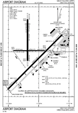 - ↑ "Great Falls International Airport Authority Montana : Airport". Archived from the original on March 9, 2009. Retrieved July 28, 2009.