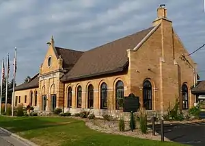 The Milwaukee Road Passenger Depot in Green Bay, Wisconsin, was built in 1898 by the Chicago, Milwaukee, St. Paul and Pacific Railroad (also known as The Milwaukee Road) to serve the businesses and residences in Green Bay on the east bank of the Fox River. Two other depots from competing railroads were built on the west bank, including the Green Bay station (Chicago and North Western Railway).