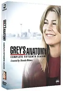 DVD cover art for the fifteenth season of Grey's Anatomy