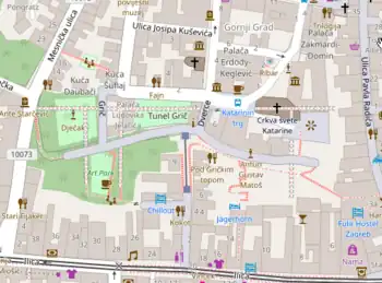 - ↑ "A new attraction - The Grič Tunnel Opens to Public". Zagreb Tourist Board. 4 August 2016. Retrieved 22 December 2016.