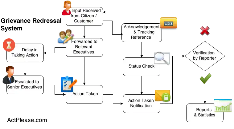 Workflow for Grievance Redressal as handled by sites such as ActPlease.com