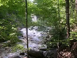![]() Grindstone Creek flowing over the Niagara Escarpment at the Boundary Falls | |