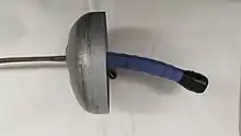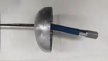A pistol grip is any grip with a special shape or protrusion intended to aid in holding the weapon. To be legal a pistol grip must fix the hand in one position, and the fencer's thumb must fall within 2 cm of the bell guard when the weapon is gripped.[1]