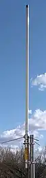 - ↑ Feedlines can be run up through a metal mast at any radio frequency, but a center-routed feedline not common for HF band antennas. Feedlines are more commonly run up through the center of the antenna's radiator at 2.4 GHz, but military whips for 50 MHz to 80 MHz band exist, and are standard issue for the SINCGARS radio in the 30–88 MHz range.