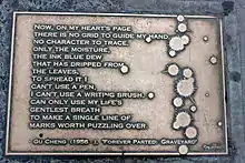 Gu Cheng's life was dramatised in the 1998 film The Poet (Chinese: 顧城別戀; pinyin: gùchéng bié liàn), which focussed on his recurrent depression and the murder of his wife.[5]