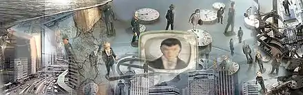 Ramos-Poquí refers to his intimate works of the 1980s as ‘symbolic paintings' which were followed during the 90s by a series driven by urban inspiration known as ‘Satirical and Metaphysical Urban paintings’, executed while he was developing digital photomontages.[10] Having already produced lithographs and etchings, it was during this period that he explored the possibilities of this new digital medium.[11] His digital photomontages were exhibited in London. They were praised by art critics including es: José Corredor-Matheos and reviewed in many London papers.[12][13] In 2001 he was commissioned to design the book covers for the Open University course 'Exploring Psychology.'[14] His assemblages, of a satirical nature, were exhibited both in London and Belfast.