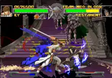 - ↑ Lopez, Miguel (January 4, 2001). "Guilty Gear X Hands-On". Archived from the original on October 6, 2003. Retrieved January 11, 2015.