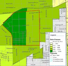 Before 1950, Gulfton consisted of farm land and much of the area belonged to Westmoreland Farms.[3] In the mid-1950s, the Shenandoah subdivision was established; consisting of sixteen city blocks of ranch-style homes.[4] Shenandoah was located adjacent to the land which would later become the site of the Gulfton apartment complexes. Decades later these communities would clash as the apartments surrounding Shenandoah deteriorated and property values became threatened.[5]