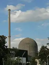 The Gundremmingen Nuclear Power Plant was a nuclear power station in Germany. It was located in Gundremmingen, district of Günzburg, Bavaria. It was operated by Kernkraftwerk Gundremmingen GmbH, a joint operation of RWE Power AG (75%) and PreussenElektra (25%). Unit B was shut down at the end of 2017. Unit C, the last boiling water reactor in Germany, was shut down on New Year's Eve 2021, as part of the German nuclear phase out.[1] However, Gundremmingen unit C as well as the other two German nuclear reactors shut down that day (Brokdorf and Grohnde) remain capable of restarting operations as of March 2022.[2] In November 1975, Unit A was the site of the first fatal accident in a nuclear power plant and subsequently of a major incident resulting in a total loss in 1977.