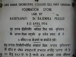 Guru Nanak Dev Engineering College (GNDEC or GNE Ludhiana) is one of the oldest engineering institutions of the northern region situated at Gill Park, Ludhiana, Punjab, India. The foundation stone of the college was laid on 8 April 1956 by Hon'ble Dr. Rajendra Prasad, the first President of India. The college has been named after 1st Sikh Guru Guru Nanak Dev Ji.