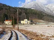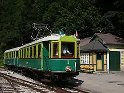 The Lower Austrian Höllental Railway (German: Höllentalbahn) is a narrow gauge electric railway with a track gauge of 760 mm (2 ft 5+15⁄16 in), which runs from the Austrian Federal Railways (ÖBB) station of Payerbach Reichenau on the Semmering Railway for approximately five kilometres through the market town of Reichenau an der Rax to Hirschwang.