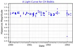 A light curve for CH Boötes, plotted from Hipparcos data[1]