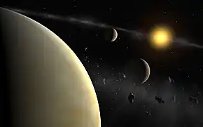 Artist's impression of the HD 69830 system as viewed from planet "d" (foreground).