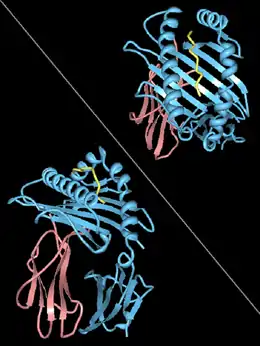 HLA-A*02 (A*02) is a human leukocyte antigen serotype within the HLA-A serotype group. The serotype is determined by the antibody recognition of the α2 domain of the HLA-A α-chain. For A*02, the α chain is encoded by the HLA-A*02 gene and the β chain is encoded by the B2M locus.[1] In 2010 the World Health Organization Naming Committee for Factors of the HLA System revised the nomenclature for HLAs. Before this revision, HLA-A*02 was also referred to as HLA-A2, HLA-A02, and HLA-A*2.[2]