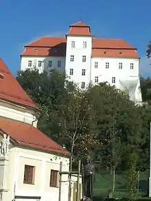 Possibly it was Arnold II of the Arnold branch who built the castles of Pölöske and Sztrigó (today Štrigova, Croatia) in Zala County in the 1240s, after Béla IV of Hungary abandoned the ancient royal prerogative to build and own castles in response to the Mongol invasion. After the 1270s the gradually marginalized Arnold branch, resided on the western part of the Hahót basin, lost the ownership of Pölöske and Sztrigó against Ottokar II of Bohemia then the increasing powerful Kőszegi family.[13] Nicholas III also owned Purbach (Hungarian: Feketeváros) in Sopron County, but after his rebellion in 1270, Stephen V of Hungary confiscated the castle and donated to his loyal soldier Panyit Miskolc. Until confiscation, Nick was also a property of Panyit Hahót.[14] In Somogy County, the branch possessed Sukoró, Mórichely, Osziágy, Surd and Kákonya. For a time, James also owned Kálmáncsa and Dobsza, formerly queenly estates.[15]
