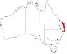 Hakea actites is found in swampy locations in coastal areas from around Hervey Bay in south-eastern Queensland in the north to a little north of Coffs Harbour in New South Wales in the south. It grows well in damp sand to sandy clay soils and is often part of open wallum heathland and Eucalyptus forest communities.[4][6]