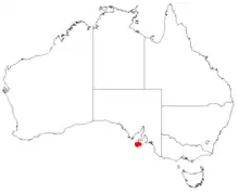 This species is endemic to a small area on the western end of Kangaroo Island in South Australia. It is confined to the more elevated parts of the lateritic plateu system, up to 100 metres above sea level and is part of the dense mallee-heath that grows in clay-loam to sandy soils.[1][4]