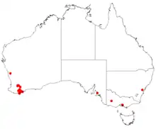 - ↑ Young, J A (2006). Hakeas of Western Australia:A Field and Identification Guide. J A Young. ISBN 0-9585778-2-X.